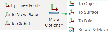- Select the third point (P3). A green arrow is displayed before picking third point. This green arrow indicates an auxiliary vector in the XY plane of the new coordinate system.