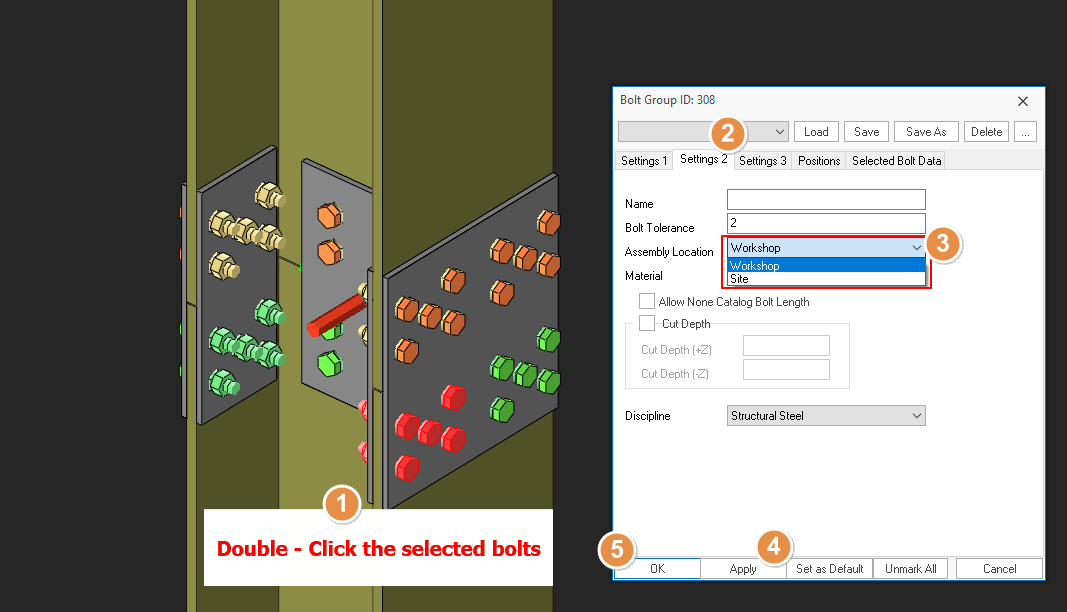 The meaning of different color of bolts are illustrated in the figure below: