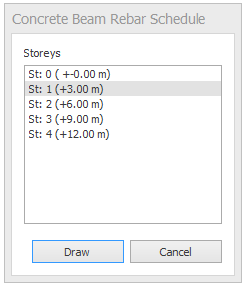 2. Select the storeys for which you want to generate the beam rebar schedule.