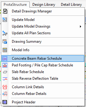 1. Pick Concrete Beam Rebar Schedule command on the ProtaStructure pulldown menu.