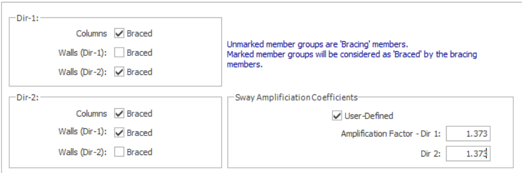 EC2 requires the user to distinguish between the braced and the bracing members of a structure. This can be specified on the Lateral Drift tab of Building Parameters.