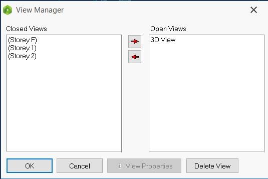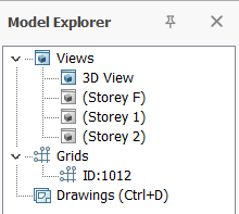 Views are created/imported from ProtaStructure under the "Views" collapsible folder in the Model Explorer pane in the left pane. By default, the views created are 3D view & plan view of each stories. Double-click on the desired view to access it.