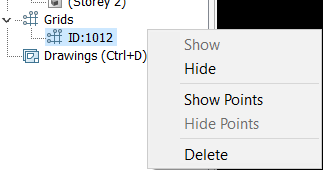 "Grids" is the axes imported from ProtaStructure. Double click on the grids ID will "Show" or "Hide" the grids. Alternatively, right click to perform the similar or more action.