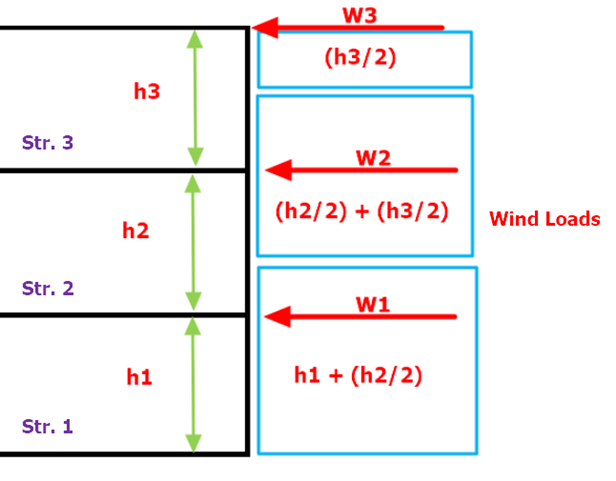 For 1st storey, ProtaStructure considers the storey’s height and half the height of the upper storey when computing wind loadings for 1st storey.