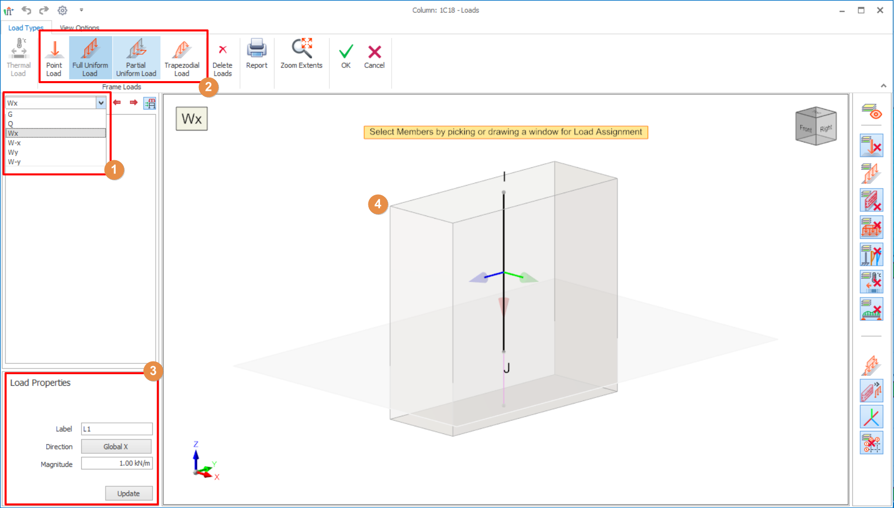 This method is to apply wind loads on the node of the columns, walls, claddings, etc. using Load Editor.
