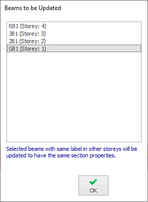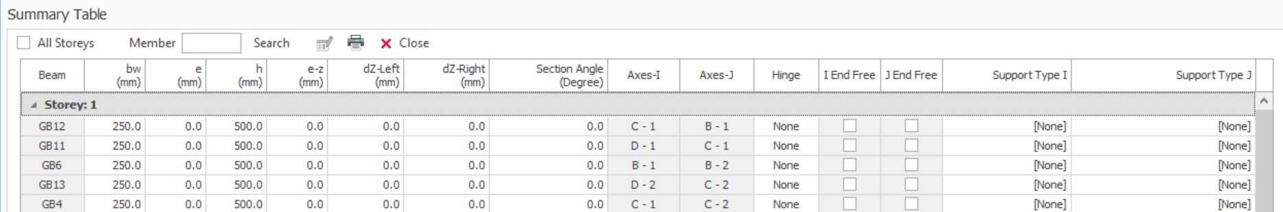 - If "All Storeys" option is checked in "Beam Table", other beams defined in the Graphic Editor are displayed even they do not belong to current storey.