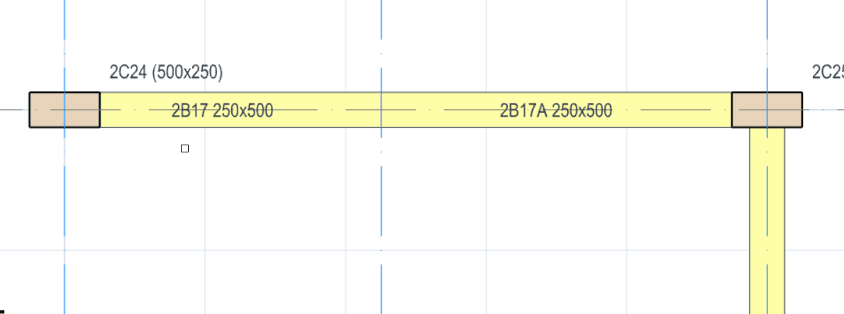 This feature is very useful but must be used with caution. If it is intended to define a beam by traditional method over an already existing axis, you must be sure to snap to the real intersection point. Program may draw the beam but not on the axis intended. Snapping options can be adjusted via Display Settings > Object Snap > in Display ribbon. Editing an Existing Beam