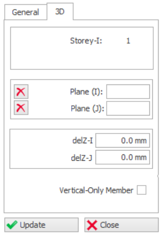 - Click on 3D tab > Input the relative elevation from storey level in "Del-Z (I)" and "Del-Z (J)".