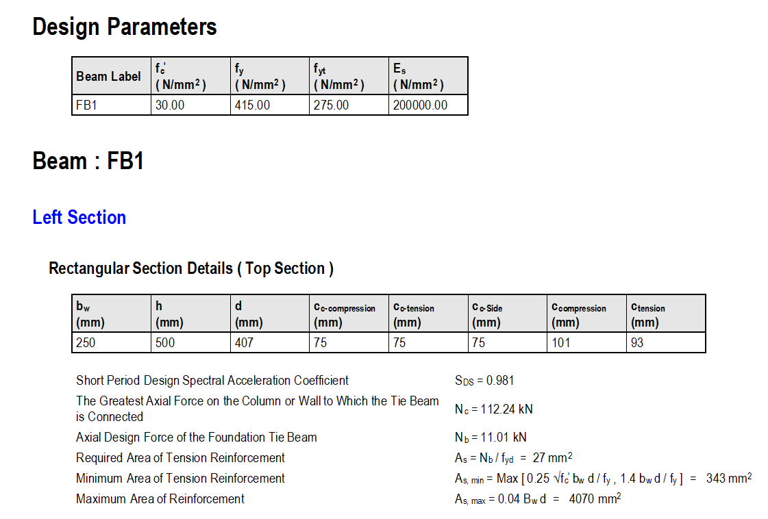 Foundation Tie Beam design is currently only implemented for Turkish Seismic Code (TBDY 2018) & American ACI318 Code.