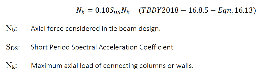 The axial force considered in the design of tie beam is calculated with this equation in Turkish Code :