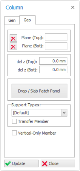 If "Plane" is used to define the column, the delta z value will automatically be calculated based on plane elevation & these fields will be deactivated.