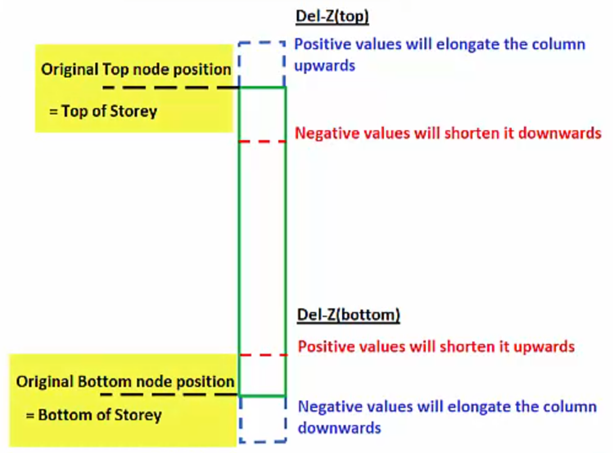 - Del z (Top) : Positive value will elongate the column upwards, vice versa