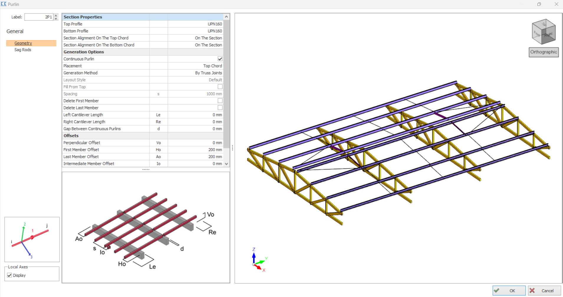- Generation method (Purlins to be placed on truss joints or by spacing)