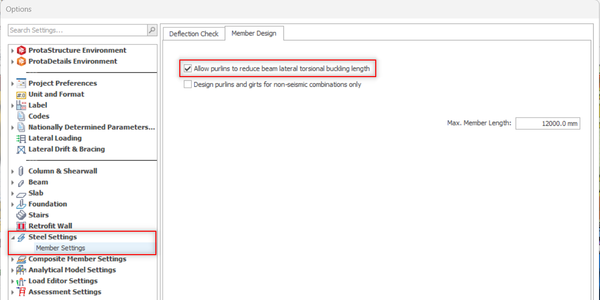 However you can change the option from Settings Center > Steel Settings > Member Settings > Beam Design > ticked / untick "Allow purlins to reduce lateral torsional buckling length".